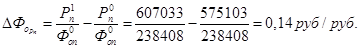 На показатель фондоотдачи влияют изменение объема реализованной продукции и изменение величины основных фондов. Выявляем влияние этих факторов методом цепных подстановок. I подстановка. Влияние изменения объема реализованной продукции: