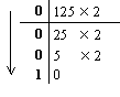 Таким образом: 2310 = 101112; 0.12510 = 0.0012. Результат: 23.12510 = 10111.0012.