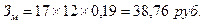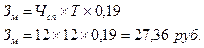 в) Расходы на спецмыло (Зм) Ежемесячно каждый рабочий получает по 1 куску мыла, по цене 0,19 рублей. Сумма затрат определится по формуле: