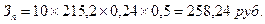 б) Расходы на спецпитание (Зп). Ежедневно рабочие, ИТР и служащие при работе во вредных условиях получают 0,5 литров молока, стоимостью 0,24 руб. за литр. Сумма затрат определится по формуле: