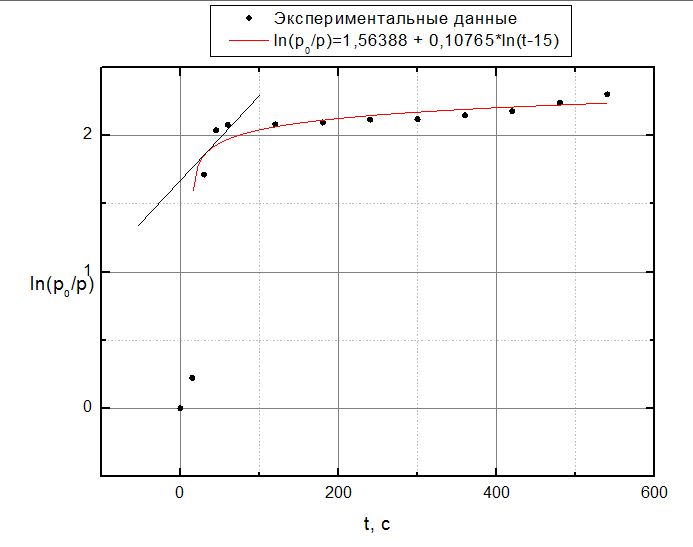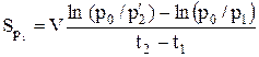 Зная объем всей вакуумной системы V и определив по графику разность ln(p0/p'2) – (ln(p0/p1), вычислите скорость откачки S при давлении р1 по формуле
