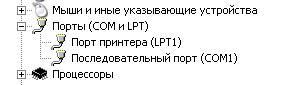 Приведем пример процедуры подготовки компьютера для ОС Windows XP. Для проверки наличия на компьютере COM порта выполните следующие команды: Пуск→Настройка→Панель управления. В окне Панель управления выберите Система. В окне Свойства системы выберите закладку Оборудование и откройте Диспетчер устройств. В окне Диспетчер устройств откройте пункт Порты (COM и LPT) (рисунок П1). Убедитесь в наличии строки Последовательный порт (COM1), номер порта может быть другим.