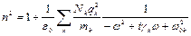 известном как формула Клаузиуса – Моссотти. В плотном материале возникает и другое усложнение. Поскольку атомы расположены слишком тесно, они сильно взаимодействуют друг с другом. При этом все собственные частоты w0 и коэффициенты затухания g в атомной поляризуемости a(w) атомов твёрдого вещества будут другими, чем для свободных атомов. С этой оговоркой, по крайней мере, приближённо, формулу Клаузиуса – Моссотти можно представить следующим образом: