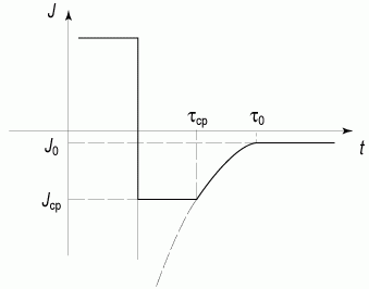Из соотношения (4.30) следует, что в момент t = 0 величина обратного тока будет бесконечно большой. Физическим ограничением для этого тока будет служить максимальный ток, который может протекать через омическое сопротивление базы диода rБ при обратном напряжении U. Величина этого тока, называемого током среза Jср, равна: Jср = U/rБ.