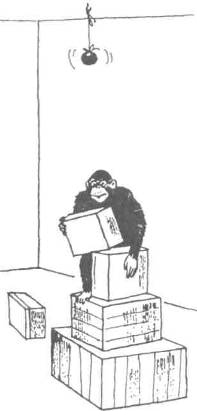 Рис. III. 19. Обезьяна не догадывается потянуть за оба конца веревки, чтобы достать чашку с Пищей Рис. III.20. Обезьяна с помощью ящиков достает высоко подвешенный предмет