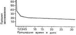 Рис. Х.10. Кривая запоминания Эббингау-за. Однофазовые кривые учения Психологические исследования показали, что в первое время после заучивания материал забывается быстрее, чем в дальнейшем; причем бессмысленный материал забывается значительно быстрее, чем связанный по смыслу. Забывание биологически целесообразно для организма. Оно обусловлено угасанием временных нервных связей, утративших свое значение и поэтому неподкрепляемых. Забывается прежде всего то, что перестает быть для личности существенным, важным, необходимым. В психологии существуют различные теории, объясняющие причины забывания. Одна из них называется теорией угасания следов, другая — теорией интерферирующего торможения следов. Согласно первой теории, следы постепенно угасают, стираются. Поэтому забывание рассматривается как естественный, протекающий пас-зивно процесс. Согласно второй тео- рии, забывание есть продукт влияния побочных воздействий, взаимного тор. можения следов. Забывание в значительной степени зависит от характера деятельности, непосредственно предшествующей запоминанию и происходящей после нее. Отрицательное влияние предшествующей запоминанию деятельности получило название проактивного (вперед направленного) торможения (см.). Отрицательное влияние следующей за запоминанием деятельности получило название ретроактивного (назад направленного) торможения. Оно особенно ярко проявляется в тех случаях, когда вслед за заучиванием выполняется сходная с ним деятельность или если эта последующая деятельность требует значительных усилий. Явления проактивного и ретроактивного торможения объясняют многие закономерности памяти: преимущества распределенного повторения по сравнению с концентрированным; лучшее сохранение начала и конца, более прочное запоминание того, что заучено непосредственно перед сном, и т. д. Воспроизведение представляет собой актуализацию, оживление ранее образовавшихся в мозгу связей. Оно может протекать преднамеренно и непреднамеренно. Формы воспроизведения: узнавание (см.), которое возникает при повторном восприятии объекта; воспоминание, которое осуществляется в отсутствие восприятия объекта; припоминание, представляющее собой наиболее активную форму воспроизведения, во многом зависящую от ясности поставленных задач; реминисценцию (см.) — как бы непроизвольное воспроизведение давно, казалось бы, забытого. Воспроизведение ранее воспринятого происходит, как правило, в от- сутствие непосредственных раздражителей, оно осуществляется на основе оживления старых связей и поэтому имеет место только при наличии более прочно закрепленных связей. Узнавание происходит в условиях непосредственного воздействия внешних раздражителей, активизирующих старые связи. Для установления различий в трудности между процессами узнавания и воспроизведения могут быть использованы рис. Х.11 и 12. Американский психолог Дж. Миллер свою статью под названием «Магическое число семь плюс или минус два» начинает словами: «Это число буквально следует за мной по пятам, я непрерывно сталкиваюсь с ним в своих делах, оно встает передо мной со страниц самых распространенных наших журналов. Оно принимает множество обличий, иногда оно немного больше, иногда меньше, но оно никогда не меняется настолько, чтобы его нельзя было узнать». 
