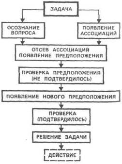 Рис. XI.7. Принципиальная схема решения мыслительных (в том числе творческих) задач.