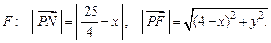Пример Найти уравнение геометрического места точек, отношение расстояний которых от точки F (4; 0) и от прямой х = 25/4 равно 4/5. Решение. Возьмем произвольную точку Р (х, у), удовлетворяющую условию задачи. На прямой