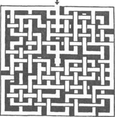 Рис. 6. Жалко вазу! Хозяйка вытирала вазу (рис. 5), сделала неловкое движение и выронила ее. Попытайтесь по черепкам определить, какая из шести представленных на рисунке ваз разбилась. Лабиринт (рис. 6). Дорожки лабиринта расположены в трех уровнях. Задача состоит в том, чтобы попасть из точки входа вверху лабиринта в комнату, расположенную в его центре. Сообразительность Футбольный турнир. Одна из страниц справочника «Футбол» с опубликованной на ней таблицей областных финальных игр по футболу оказалась залитой чернилами. Все, что осталось от таблицы, имело следующий вид.
