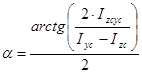 3. Нахождение положения главных осей и моментов инерции: Угол наклона главных осей инерции, проходящих через центр тяжести составного сечения, к центральным осям инерции ZcYc определим по формуле: