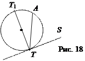 Доказательство. Пусть сторона TS угла ATS является касательной, а сторона ТА – хордой (рис. 18). Проведём диаметр ТТ 1. Если 180 Ð АТS = 90