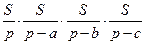 Теорема 2. Для любого треугольника его площад равна произведению радиусаыуса окружности на полупериметр, уменьшенному на сотору, которой касается эта окружность: S = ra (p – a).