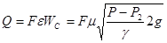 Заменить в этой формуле W на WС где φ = WС/WТ – коэффициент скорости; WС – действительная скорость истечения в сжатом сечении струи; WТ – теоретическая скорость истечения в сжатом сечении струи. Объемный расход жидкости через отверстие в тонкой стенке может быть найден по параметрам сжатого сечения как Q = FСWС, здесь FС – площадь струи в сжатом сечении. Введя характеристику сжатия струи ε = FС/F, находим с учетом (27)