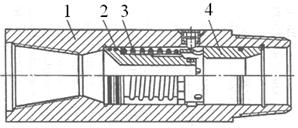 Рисунок 27. Золотниковый переливной клапан. 1– корпус; 2– поршень; 3– пружина; 4– седло.