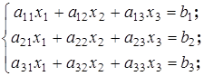 Рассмотрим систему трех линейных уравнений с тремя неизвестными:
