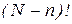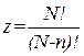 Из рассмотренного примера вытекает, что все микросостояния данной системы равновероятны, вследствие чего статистический вес оказывается пропорциональным вероятности (обычной) макросостояния. Утверждение о равновероятности всех микросостояний лежит в основе статистической физики и носит название эргодической гипотезы. Согласно табл. 1.3 в случае четырех молекул имеется большая вероятность (равная 1/8) того, что все молекулы соберутся в одной из половин сосуда (левой или правой). Однако с увеличением числа молекул положение существенно меняется. Найдем число способов (число микросостояний), посредством которых может быть осуществлено макросостояние, характеризуемое тем, что в левой половине сосуда окажется n молекул из общего числа их N, а в правой половине – (N–n) молекул. Для этого пронумеруем молекулы, приписав им номера от 1 до N. Затем станем отбирать по одной молекуле и помещать их в левую половину сосуда. Первую молекулу можно выбрать N способами, вторую – (N–1) способом, третью – (N–2) способами, наконец, n -ю молекулу можно выбрать (N–n+1) способом. Оставшиеся (N–n) молекул поместим в правую половину сосуда. Из сказанного выше следует, что число z способов, с помощью которых можно отобрать случайным образом из общего числа N молекул n молекул для левой половины сосуда, равно
