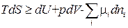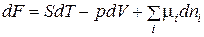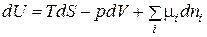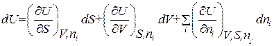 Существуют многокомпонентные системы, состоящие из большого числа фаз, причём их состав меняется в зависимости от температуры, давления и т.д. Если в системе имеется несколько компонент, то её внутренняя энергия зависит от концентрации n i каждой из компонент. В качестве других независимых переменных, от которых зависит внутренняя энергия, удобно взять объём V и энтропию S, т.е. записать