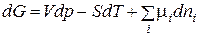 где Аналогично, с учётом переменного числа частиц можно модифицировать и остальные термодинамические функции. Например, термодинамический потенциал Гиббса G будет выглядеть так: