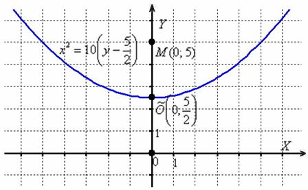 Пример 4: Решение: пусть точка принадлежит искомому множеству точек. Тогда: По условию: – парабола, ветви которой направлены вверх, с вершиной и фокальным параметром : Примечание: аналитическое условие задачи формулирует определение данной параболы, т.е. точка является её фокусом, а ось абсцисс – директрисой. Приведём уравнение кривой к каноническому виду: 1) Повернём параболу на 90 градусов по часовой стрелке вокруг вершины : и осуществим её параллельный перенос вершиной в начало координат: . 2) Повернём прямоугольную систему координат на 90 градусов против часовой стрелки и перенесём её началом координат в точку . Тогда в новой системе координат уравнение данной параболы примет канонический вид . Ответ: – парабола. Каноническое уравнение: (либо в зависимости от способа приведения).