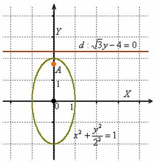 Пример 6: Решение: пусть точка принадлежит искомому множеству точек. Тогда: По условию: Приведем уравнение к каноническому виду: – эллипс с центром в начале координат и полуосями, равными 1 и 2. Примечание: здесь нежелательна формулировка «с полуосями », поскольку буквой «а» стандартно обозначают большую полуось, а «единица» таковой не является по причине неканонического положения эллипса. Выполним чертеж: Приведём уравнение к каноническому виду: 1) Способ первый. Повернём эллипс вокруг центра на 90 градусов: . Вычислим и запишем фокусы: . Найдём эксцентриситет: . Директрисы эллипса задаются уравнениями , в данном случае: Ответ: искомое множество точек представляет собой эллипс . Канонический вид уравнения: . Фокусы: , эксцентриситет: , директрисы: .
