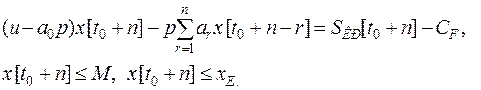 Поставим задачу: организовать выпуск продукции и привлечение кредитов в таком объеме, чтобы к концу планируемого периода достичь желаемого объема производства и вернуть кредиты вместе с процентами. Обозначим через Введем в рассмотрение терминальную целевую функцию, определяющую желаемый выпуск в конце планового периода