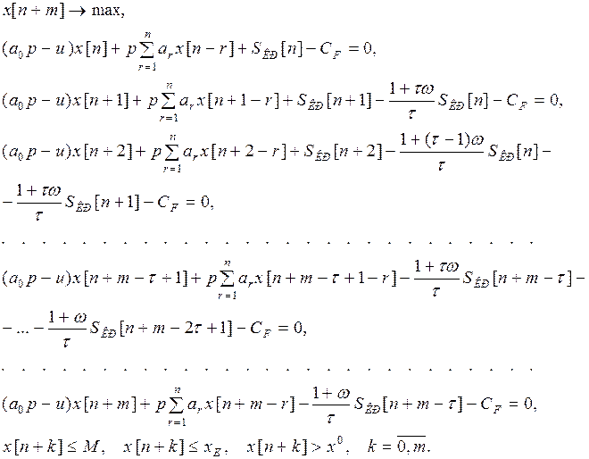 В периоде За На основании соотношений (2.22) – (2.24) составим оптимизационную модель, положив для компактности записи