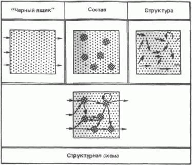 Модель структуры системы отображает связи, взаимодействия, или отношения, между компонентами модели ее состава, то есть совокупность связанных между собой моделей "черного ящика" для каждой из частей системы. Поэтому трудности построения модели структуры те же, что и для построения модели "черного ящика".