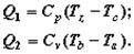 В цикле с сообщением теплоты при постоянном объеме вводимое количество Q1 теплоты пропорционально его изобарной теплоемкости СP, а отводимое Q2 пропорционально его изохорной теплоемкости Сν и соответствующим разностям температур: