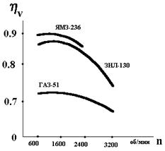 Рис. 2.4. Зависимость коэффициента наполнения от числа оборотов Степень загрязненности свежего заряда остаточными газами горючей смеси характеризует коэффициентом остаточных газов, который равен: