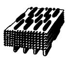 Рис. 3.4. Термостат с твердым наполнителем Радиатор является теплорассеивающим устройством, предназначенным для передачи тепла охлаждающей жидкости окружающему воздуху. Радиаторы автомобильных и тракторных двигателей состоят из верхнего и нижнего резервуаров, соединенных между собой большим количеством тонких трубок. Для усиления передачи тепла от охлаждающей жидкости воздуху поток жидкости в радиаторе направляют через ряд обдуваемых воздухом узких трубок или каналов. Радиаторы изготовляют из материалов, хорошо проводящих и отдающих тепло (латуни и алюминия). В зависимости от конструкции охлаждающей решетки радиаторы делят на трубчатые, пластинчатые и сотовые. В настоящее время наибольшее распространение получили трубчатые радиаторы. Охлаждающая решетка таких радиаторов (рис. 3.5а) состоит из вертикальных трубок овального или круглого сечения, проходящих через ряд тонких горизонтальных пластин и припаянных к верхнему и нижнему резервуарам радиатора. Наличие пластин улучшает теплопередачу и повышает жесткость радиатора. Трубки овального (плоского) сечения предпочтительнее, так как при одинаковом сечении струи поверхность охлаждения их больше, чем поверхность охлаждения круглых трубок; кроме того, при замерзании воды в радиаторе плоские трубки не разрываются, а лишь изменяют форму поперечного сечения.