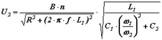 где R – активное сопротивление первичной обмотки; 2·? · f ·L1 – индуктивное сопротивление первичной обмотки; f – частота индуктируемого тока; L1 – индуктивность первичной обмотки; п – число оборотов ротора магнето; В – коэффициент пропорциональности. В результате получим: