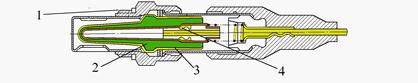 Рис. 10.6. Каталитический нейтрализатор с керамическими сотами Керамика выдерживает температуру до 800–850? С. Неисправности системы питания (затрудненный пуск) и длительная работа на переобогащенной рабочей смеси приводят к тому, что избыточное топливо будет сгорать в нейтрализаторе. Это приводит к оплавлению сот и выходу нейтрализатора из строя. Сегодня в качестве носителей каталитического слоя применяют металлические соты. Это позволяет увеличить площадь рабочей поверхности, получить меньшее противодавление, ускорить разогрев нейтрализатора до рабочей температуры и расширить температурный диапазон до 1000–1050? С. Каталитические нейтрализаторы с восстановительной средой, или трехкомпонентные нейтрализаторы, используются в системах выпуска отработавших газов, как для снижения выбросов СО и СН, так и для снижения выбросов окислов азота. Каталитический слой нейтрализатора содержит, кроме платины и палладия, редкоземельный элемент родий. В результате химических реакций на поверхности разогретого до 600–800? С катализатора СО, СН, Nоx, содержащиеся в отработавших газах, превращаются в H2O, СО2, N2: 2NO + 2СО? N2 + 2СО2. 2NO + 2Н2? N2 + 2Н2О. Эффективность трехкомпонентного каталитического нейтрализатора достигает в реальных условиях эксплуатации 90%, но лишь при условии, что состав горючей смеси отличается от стехиометрического не более чем на 1%. Из-за изменения параметров двигателя вследствие его износа, работы на нестационарных режимах, дрейфа настроек систем питания поддерживать стехиометрический состав горючей смеси только за счет конструкции карбюраторов или инжекторов не представляется возможным. Необходима обратная связь, которая оценивала бы состав топливовоздушной смеси, поступающей в цилиндры двигателя. На сегодняшний день наибольшее распространение получила система обратной связи с использованием так называемого датчика кислорода (лямбда-зонда) на основе циркониевой керамики ZrO2 (рис. 10.7). Чувствительным элементом лямбда-зонда является циркониевый колпачок 2. Внутренняя и внешняя поверхности колпачка покрыты тонкими слоями из платинородиевого сплава, которые выполняют роль внешнего 3 и внутреннего 4 электродов. С помощью резьбовой части 1 датчик устанавливается в выпускной тракт. При этом внешний электрод омывается обработавшими газами, а внутренний – атмосферным воздухом.