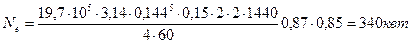 Пример. Определить эффективную мощность двигателя торпеды, если известно, что Рi,= 19,7 дан/см2 (дан — деканьютон), dц =144 мм, S = 150 мм, n=1440 об/мин Решение Неизвестную величину Ne определяем по формуле (6.5), приняв т=2, 1 = 2 и среднее значение к. п д.: