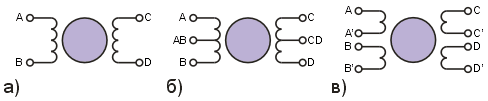 В зависимости от конфигурации обмоток двигатели делятся на биполярные и униполярные. Биполярный двигатель имеет одну обмотку в каждой фазе, которая для изменения направления магнитного поля должна переполюсовывается драйвером. Для такого типа двигателя требуется мостовой драйвер, или полумостовой с двухполярным питанием. Всего биполярный двигатель имеет две обмотки и, соответственно, четыре вывода (рис.1.7а).