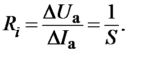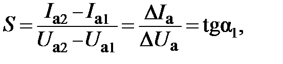 где σ – постоянная для данного типа лампы. В режиме насыщения ток I a не должен зависеть от напряжения U a. Основные статические параметры диода – это крутизна характеристики (S) и внутреннее сопротивление (Ri). Свойства диода наиболее удобно оценить с помощью следующих статических параметров: 1 Крутизна характеристики лампы, характеризующая степень изменения анодного тока I a при изменении анодного напряжения U a на 1 В. Так как анодная характеристика нелинейна, то крутизна для различных точек характеристики различная. Для выбранной точки характеристики крутизна может быть определена как отношение приращения анодного тока I a к приращению анодного напряжения U a: