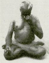 29. При вдохе верхняя (внутренняя) часть кончика пальца оказывает легкое надавливание с целью сузить проход в основании носа. Действия пальцев можно сравнить с водой, отводимой из резервуара на близлежащие поля. Воздух действует, как резервуар, кончики пальцев как ворота шлюзов, через которые вода устремляется в ирригационные каналы бронхи. Поток контролируется воротами шлюзов, которые усмиряют мощь потока и контролируют уровень воды в канале. Каналы разветвляются на ирригационные канавы, по которым вода поступает на поля и питает урожай Бронхи разветвляются на бронхеолы, чтобы донести вдыхаемый воздух в самые отдаленные утолки альвеол. 30. При выдохе внутренняя часть кончиков пальцев используется для контроля, средняя — для стабилизации и ослабления силы дыхания, а наружная часть для направления дыхания. Если при выдохе узкие (внутренние) области кончиков пальцев используются так же, как и при вдохе, то результатом будет ощущение удушья. Ослабьте нажатие внутренними областями кончиков пальцев, а наружные части напрягите я сделайте их устойчивыми Это сделает исходящий ток дыхания плавным Выдох можно уподобить течению реки к морю. Поток дыхания из альвеол подобен бегу воды в горных источниках, которые растворяются в ручьях, бронхеолах Ручьи соединяются в притоки и, наконец, величественная река простирается в своей дельте, чтобы встретиться с морем Воздух в бронхиолах течет в бронхи и отсюда - в носовую полость, дельту, чтобы встретиться с океаном атмосферы. 31. Если звук дыхания груб, или дыхание - - быстрое, причина этому - слишком широкие носовые проходы. Поток воздуха становится более плавным, если сузить проходы. Если поток дыхания правильный и равномерный, то в кончиках пальцев ощущается мягкая вибрация. Прислушивайтесь к резонирующему звуку дыхания и улучшайте его Если звук не резонирующий, а грубый и жесткий, это указывает на то, что кончики пальцев расположены вертикально по отношению к ноздрям (фот. 130). Расположите их горизонтально. 32. Действуйте, сохраняя полное понимание того, что происходит между кончиками пальцев и слизистой оболочкой носа. Только прикосновение, равновесие и непрерывное надавливание кончиками пальцев, направляющее поток дыхания, могут привести к совершенству в пальцевой пранаяме.