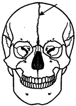 Рис. 14.8. Череп человека с методическим швом (указан стрелкой)