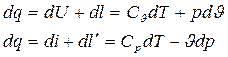 Тема 2. Первый и второй законы термодинамики Первый закон термодинамики устанавливает количественные соотношения между теплотой и работой и является частным случаем общего закона природы, закона сохранения и превращения энергии. Дифференциальные уравнения первого закона для 1 кг рабочего тела имеют вид:
