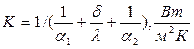 Q – тепловой поток, Вт; К – коэффициент теплопередачи, Вт/(м²·К); F – площадь поверхности нагрева, м²;