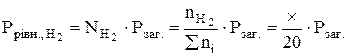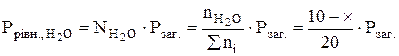 Загальна кількість моль реагуючих речовин у стані рівноваги дорівнюватиме åni = 10-´ + 10-´ + ´ + ´ = 20, а парціальні тиски кожної з реагуючих речовин становитимуть: