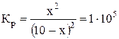 Підставивши рівноважні тиски речовин в рівняння (6.8), визначимо кількість моль прореагувавших речовин (х):