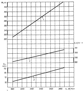 ПРИМЕЧАНИЯ: 1. Мощность двигателя и удельные расходы топлива на всех режимах, должны обеспечиваться при незагруженных генераторе и компрессоре. 2. Верхний предел мощности и давление наддува за нагнетателем на взлетном, первом и втором номинальных режимах не ограничиваются. 3. В скобках даны номинальные значения частоты вращения коленчатого вала, выраженные в процентах по унифицированному тахометру (99,4 % соответствует 2900 об/мин коленчатого вала).