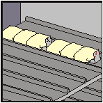 Предположим, что поднос гамбургеров упакован и помещен на бин в 10:05. Минутная стрелка часов времени хранения указывает на черную цифру 1 из внутреннего ряда цифр. При этом черной цифре 1 на внутреннем ряду цифр соответствует черная цифра 3 на внешнем ряду цифр. Каждому виду продукции отпущено 10 минут на нахождение на бине. Продукция должна быть удалена в отходы в 10:15, когда минутная стрелка будет указывать на черную цифру 3 из внутреннего ряда цифр. Вам не надо рассчитывать, когда закончится 10-мин. срок хранения. Проследите движение минутной стрелки часов времени хранения вдоль ряда цифр, расположенных по внутреннему кругу циферблата. В рассматриваемом случае минутная стрелка через 10 минут укажет на внутреннюю черную цифру 3.