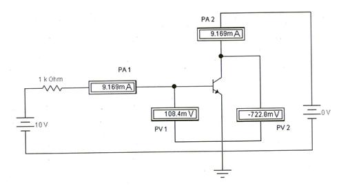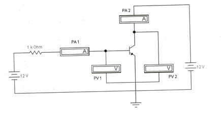 Задание: исследование статических вольтамперных характеристик транзистора по схеме с ОЭ. а) Соберем схему измерений с ОЭ в программе Electronic Workbeench.