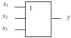 16. Усилитель состоит из двух каскадов. Коэффициент усиления первого каскада – 50, второго – 20. Общий коэффициент усиления: a) 100; b) 70; c) 1000; d) 30. 17. Эфективное поглощение света фотодиодами происходит на: a) границе раздела области с противоположными числами проводимости одного и того же полупроводника; b) вблизи контакта двух различных полупроводников; c) металла и полупроводника; d) во всех случаях. 18. Фототранзисторы, как правило, включены по схеме: a) с общим эммитером; b) с общим коллектором; c) с общей базой. 19. На рисунке изображено условное обозначение элемента, выполняющего логическую операцию: a) сложения (ИЛИ); b) умножения (И); c) инверсии (НЕ); d) стрелка Пирса (ИЛИ-НЕ).