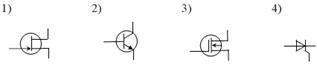 12. Условно-графическое обозначение биполярного транзистора представлено на рисунке: a) 1; b) 2; c) 3; d) 4.