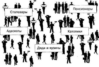 Рис. 2. Социальный состав населения - это заполненные тысячами и миллионами людей статусы. из множества неосновных, или частных институтов. Их называют социальными практиками. К примеру, в институт государства входят институт президентства, институт парламентаризма, армия, суд, адвокатура, полиция, прокуратура, институт присяжных и т.д. Так же обстоит дело с религией (институты монашества, крещения, исповеди и т.д.), производством, семьей, образованием. Совокупность социальных институтов называется социальной системой общества. Она связана не только с институтами, но также с социальными организациями, социальным взаимодействием, социальными ролями. Одним словом, с тем, что движется, работает, действует. Итак, сделаем четвертый вывод: статусы, роли, социальный контроль существуют не сами по себе. Они формируются в процессе удовлетворения фундаментальных потребностей общества. Механизмами такого удовлетворения выступают социальные институты, подразделяющиеся на основные (их всего пять: семья, производство, государство, образование и религия) и неосновные (их гораздо больше), называемые еще социальными практиками.