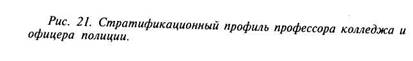 хорошее, среднее, чуть хуже среднего, самое плохое занятие. В список попали практически все занятия от верховного судьи, министра и врача до сантехника и дворника. Рассчитав среднее по каждому занятию, социологи в баллах получили общественную оценку престижности каждого вида труда. Выстроив их в иерархическом порядке от самой уважаемой до самой непрестижной, они получили рейтинг, или шкалу профессионального престижа. К сожалению, в нашей стране периодических репрезентативных опросов населения о профессиональном престиже никогда не проводилось. Поэтому придется пользоваться американскими данными (см. табл.). Сравнение данных за разные годы (1949, 1964, 1972, 1982) показывает устойчивость шкалы престижа. Наибольшим, средним и наименьшим престижем в эти годы пользовались одни и те же виды занятий. Юрист, врач, преподаватель, ученый, банкир, летчик, инженер получали неизменно высокие оценки. Их положение на шкале менялось незначительно: врач в 1964 г. стоял на втором месте, а в 1982 - на первом, министр соответственно занимал 10 и 11 места. Если верхнюю часть шкалы занимают представители творческого, интеллектуального труда, то нижнюю - представители преимущественно физического малоквалифицированного: водитель, сварщик, плотник, сантехник, дворник. У них наименьшее статусное уважение. Люди, занимающие одинаковые позиции по четырем измерениям стратификации, составляют одну страту. Для каждого статуса или индивида можно найти место на любой шкале. Классический пример - сравнение офицера полиции и профессора колледжа. На шкалах образования и престижа профессор стоит выше полицейского, а на шкалах дохода и власти полицейский стоит выше профессора. Действительно, власти у профессора меньше, доход несколько ниже, чем у полицейского, но престижа и лет обучения у профессора больше. Отметив того и другого точками на каждой шкале и соединив их линиями, получим стратификационный профиль. Каждую шкалу можно рассматривать отдельно и обозначать самостоятельным понятием. В социологии выделяют три базисных вида стратификации: • экономическую (доход),