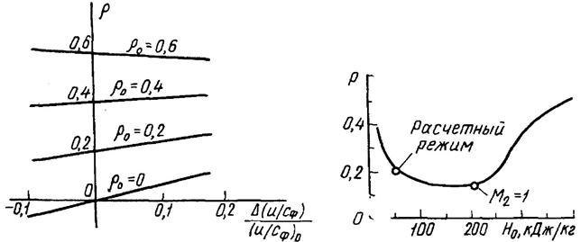Изменение расхода пара на турбину приводит к изменению давлений и теплоперепадов по ее ступеням. Характер и значения изменений этих параметров определяют по соотношениям, приведенным выше. Все изменения режима работы ступени можно свести к изменениям следующих режимных параметров: отношения скоростей В общем случае эти параметры изменяются одновременно, но нагляднее рассмотреть влияние каждого из них на степень реактивности и КПД ступени. Изменение степени реактивности. При изменении расхода пара изменяется располагаемый теплоперепад ступени, а следовательно, отношение скоростей Из определения степени реактивности ступени следует
