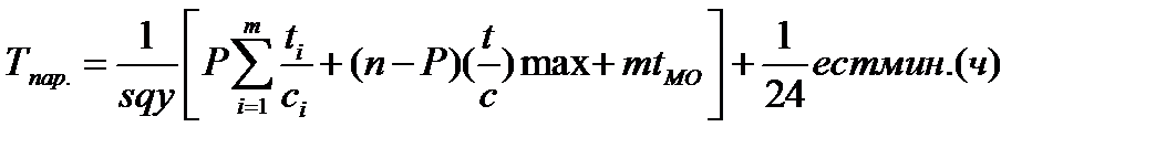 tМО - средняя величина межоперационных перерывов, мин.(ч); n – количество изделий в партии, шт.; P - величина передаточной (транспортной) партии изделий, тт.; S - коэффициент сменности, смен в сутки; q - продолжительность смены, мин.(ч);